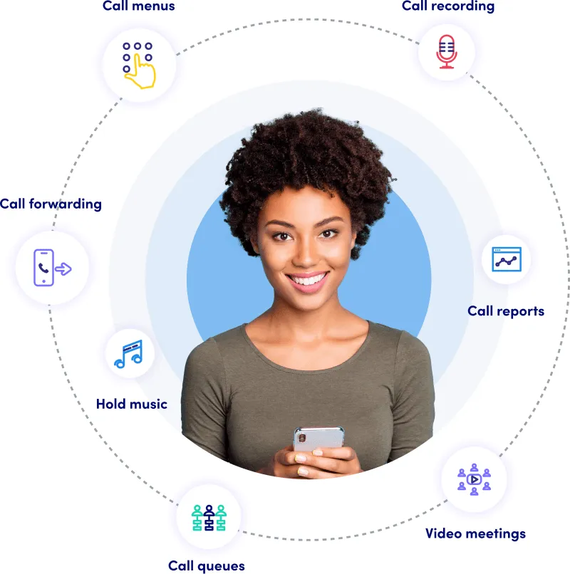 Includes mobile apps for Android and iOS which allow you to take your office extension with you anywhere. Answer calls via the office phone extension and transfer to colleagues without asking customers to call another number. Slash your company’s mobile phone costs, increase productivity and make sure you never miss a call again